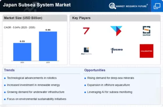 The Japan Subsea System Market is characterized by rapid technological innovations that enhance the efficiency and effectiveness of subsea operations. Advancements in robotics, automation, and data analytics are transforming the way subsea systems are designed and operated. Companies are increasingly adopting advanced technologies such as remotely operated vehicles (ROVs) and autonomous underwater vehicles (AUVs) to conduct inspections and maintenance of subsea infrastructure. These innovations not only improve operational efficiency but also reduce costs associated with subsea operations. As the demand for more sophisticated subsea systems grows, it is likely that the market will continue to evolve, driven by the need for enhanced capabilities and performance.