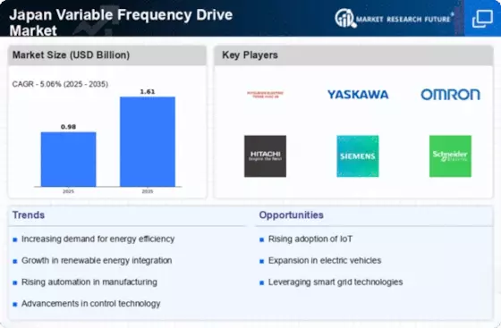 The ongoing trend towards industrial automation in Japan is a crucial driver for the Japan Variable Frequency Drive Market. As manufacturers increasingly adopt automation technologies to enhance productivity and reduce operational costs, the demand for VFDs is expected to rise. VFDs play a vital role in controlling motor speed and torque, which is essential for automated processes. According to recent data, the industrial automation market in Japan is projected to grow at a compound annual growth rate (CAGR) of approximately 5% over the next few years. This growth is likely to translate into higher demand for VFDs, as they are integral to the efficient operation of automated systems, thus propelling the Japan Variable Frequency Drive Market forward.