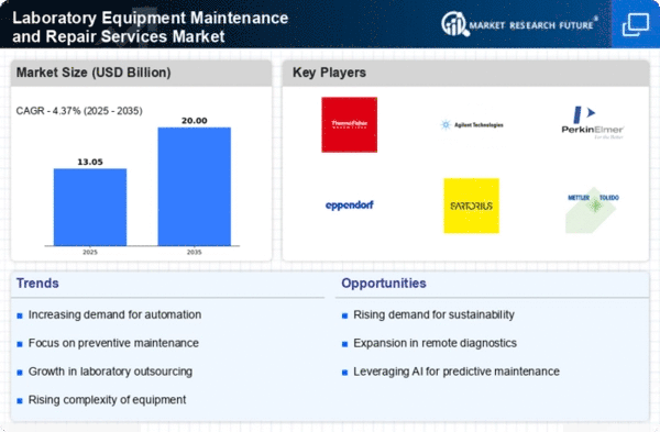 The Laboratory Equipment Maintenance and Repair Services Market is characterized by a competitive landscape that is increasingly shaped by innovation, strategic partnerships, and a focus on digital transformation. Key players such as Thermo Fisher Scientific (US), Agilent Technologies (US), and PerkinElmer (US) are actively positioning themselves to leverage technological advancements and enhance service offerings. For instance, Thermo Fisher Scientific (US) emphasizes its commitment to innovation through continuous investment in R&D, which appears to bolster its market presence and operational efficiency. Meanwhile, Agilent Technologies (US) focuses on expanding its service portfolio, particularly in the realm of digital solutions, which seems to resonate well with the growing demand for integrated laboratory services. Collectively, these strategies contribute to a dynamic competitive environment where adaptability and technological prowess are paramount.In terms of business tactics, companies are increasingly localizing manufacturing and optimizing supply chains to enhance service delivery and reduce operational costs. The market structure appears moderately fragmented, with several key players exerting influence while also facing competition from smaller, specialized firms. This fragmentation allows for a diverse range of service offerings, catering to various customer needs and preferences, thereby enriching the overall market landscape.