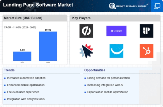 The heightened focus on customer engagement is a significant driver for the Landing Page Software Market. Businesses are recognizing that engaging customers effectively can lead to improved loyalty and retention rates. As a result, there is a growing investment in tools that enhance user interaction, including landing page software. Research indicates that companies that prioritize customer engagement experience higher conversion rates and overall satisfaction. This trend suggests that the Landing Page Software Market will continue to thrive as organizations seek to create compelling landing pages that foster meaningful connections with their audiences.