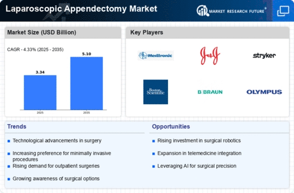 Europe's laparoscopic appendectomy market is projected to reach $1.0 billion by 2025, driven by increasing surgical procedures and a growing aging population. The region benefits from strong regulatory frameworks that promote minimally invasive techniques, enhancing patient outcomes. Countries like Germany and the UK are at the forefront, with rising healthcare expenditures and a shift towards outpatient surgeries contributing to market growth. Germany, France, and the UK are leading players in this market, with significant investments from key companies such as B. Braun Melsungen AG and Olympus Corporation. The competitive landscape is characterized by collaborations and partnerships aimed at enhancing surgical technologies. As Europe embraces innovative solutions, the market is expected to expand, supported by favorable regulations and a focus on improving surgical efficiency.