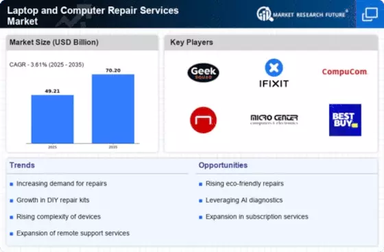 North America continues to lead the Laptop and Computer Repair Services Market, holding a significant market share of 20.0 in 2024. The growth is driven by increasing consumer reliance on technology, coupled with a surge in remote work and online learning. Regulatory support for electronic waste management and repair initiatives further catalyzes market expansion, ensuring sustainable practices in the industry. The competitive landscape is robust, with key players like Geek Squad, iFixit, and Best Buy dominating the market. The U.S. remains the largest contributor, supported by a high density of service centers and a strong consumer base. The presence of established brands fosters trust and reliability, making North America a pivotal region for laptop repair services.