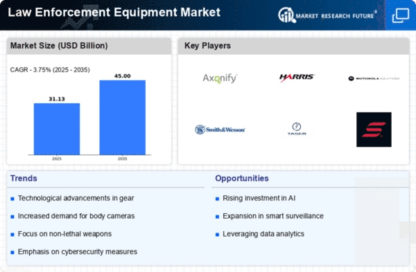 The Middle East and Africa (MEA) region presents a unique landscape for the Law Enforcement Equipment Market, with a size of 2.0 in 2024. The growth is influenced by rising security concerns, geopolitical tensions, and the need for enhanced law enforcement capabilities. Governments are increasingly investing in modern equipment to address these challenges, driving demand for advanced technologies and solutions.