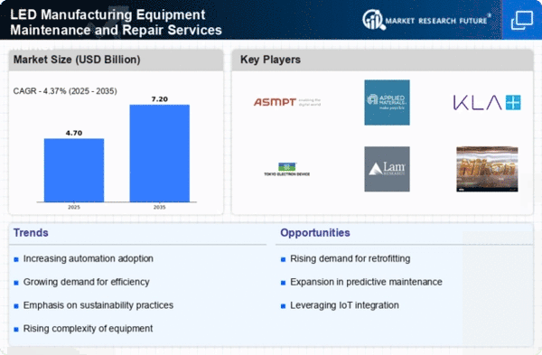 Europe's LED Manufacturing Equipment Maintenance and Repair Services Market is projected to reach $1.5B by 2025, driven by increasing demand for energy-efficient solutions and stringent environmental regulations. The European Union's commitment to sustainability and the Green Deal initiatives are pivotal in shaping market dynamics, encouraging investments in LED technologies and maintenance services. This regulatory environment fosters innovation and enhances market growth potential.