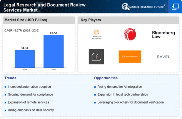 Europe's Legal Research and Document Review Services Market is valued at 3.0, reflecting a growing demand for legal technology solutions. The region is witnessing a shift towards digitalization, driven by regulatory changes and the need for efficiency in legal processes. Countries like the UK and Germany are leading this transformation, with increasing investments in legal tech startups and platforms that enhance research capabilities and document management.