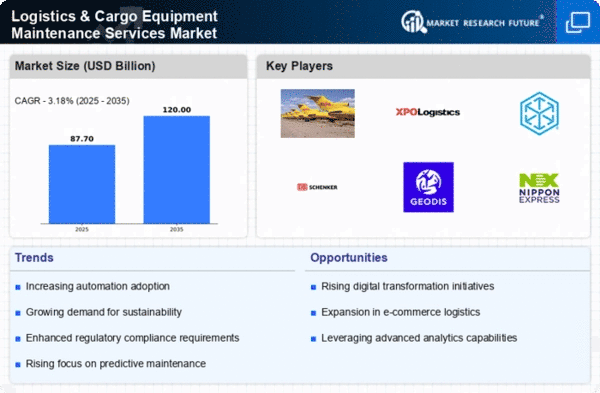 The competitive landscape in North America is robust, featuring key players such as Kuehne + Nagel, XPO Logistics, and DHL Supply Chain. The U.S. stands out as the largest market, supported by a well-established infrastructure and a high demand for maintenance services. Companies are increasingly investing in innovative technologies to enhance service delivery and operational efficiency, ensuring they remain competitive in this dynamic market.
