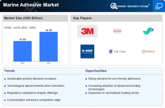 The Marine Adhesive Market is increasingly influenced by sustainability initiatives. Manufacturers are focusing on developing eco-friendly adhesives that minimize environmental impact. This shift is driven by regulatory pressures and consumer demand for greener products. The market for bio-based adhesives is projected to grow significantly, with estimates suggesting a compound annual growth rate of over 10% in the coming years. Companies are investing in research and development to create adhesives that not only perform well but also align with environmental standards. This trend is likely to reshape product offerings and could lead to a competitive advantage for those who prioritize sustainability in their manufacturing processes.
