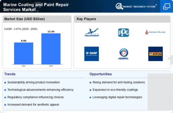 Europe's Marine Coating and Paint Repair Services Market is valued at €2.8 billion, reflecting a growing demand driven by the region's extensive shipping industry and increasing environmental regulations. The European Union's commitment to sustainability and reducing carbon emissions is a significant catalyst for the adoption of eco-friendly marine coatings. This regulatory push is expected to enhance market growth and innovation in the sector.