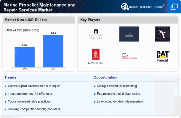 The Marine Propeller Maintenance and Repair Services Market is characterized by a competitive landscape that is increasingly shaped by technological advancements and strategic partnerships. Key players such as Wärtsilä (FI), Rolls-Royce (GB), and Kongsberg Gruppen (NO) are actively pursuing innovation and digital transformation to enhance their service offerings. Wärtsilä (FI), for instance, has focused on integrating advanced analytics and IoT solutions into its maintenance services, which not only improves operational efficiency but also enhances customer satisfaction. This collective emphasis on innovation among major players is likely to intensify competition, as companies strive to differentiate themselves through superior service delivery and technological capabilities.In terms of business tactics, companies are increasingly localizing manufacturing and optimizing supply chains to respond swiftly to market demands. The competitive structure of the market appears moderately fragmented, with several players vying for market share. However, the influence of key players remains substantial, as they leverage their resources and expertise to set industry standards and drive growth. This dynamic suggests that while smaller firms may find niche opportunities, the larger entities are likely to dominate through economies of scale and advanced technological integration.