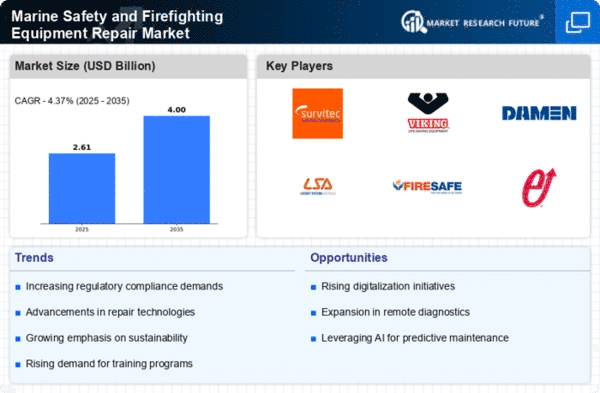 The Middle East and Africa region, with a market size of 0.1 billion, presents emerging opportunities in the Marine Safety and Firefighting Equipment Repair Market. The growth is primarily driven by increasing maritime activities and a growing focus on safety regulations. However, challenges such as limited infrastructure and regulatory inconsistencies may hinder market expansion. Despite these obstacles, the region is gradually recognizing the importance of safety in maritime operations.