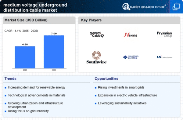 The medium voltage underground distribution cable market in the Middle East and Africa is projected to reach $0.15 billion by 2025, driven by increasing investments in infrastructure and energy projects. The region's growing population and urbanization are leading to higher electricity demand, prompting governments to enhance their power distribution networks. Regulatory frameworks are gradually evolving to support these developments, creating a conducive environment for market growth. Countries like Saudi Arabia and South Africa are at the forefront of this market, with local players such as Riyadh Cables Group Company making significant contributions. The competitive landscape is still developing, with opportunities for both local and international companies to enter the market. As infrastructure projects expand, the demand for medium voltage cables is expected to rise, presenting growth opportunities for stakeholders in the region.