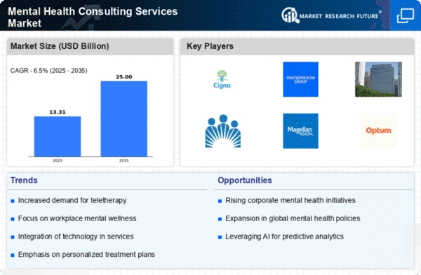 The increasing awareness surrounding mental health issues is a pivotal driver for the Mental Health Consulting Services Market. As societies become more cognizant of mental health's impact on overall well-being, individuals and organizations are seeking professional guidance. This heightened awareness has led to a surge in demand for mental health consulting services, with the market projected to grow at a compound annual growth rate of approximately 7.5% over the next few years. Organizations are recognizing the importance of mental health in the workplace, prompting them to invest in consulting services to foster a healthier work environment. Consequently, the Mental Health Consulting Services Market is experiencing a transformative shift, as more stakeholders prioritize mental health initiatives.