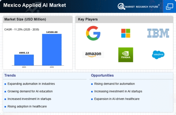 There is a notable increase in collaboration between industry and academia in Mexico, which is positively impacting the applied ai market. Universities and research institutions are partnering with businesses to develop innovative AI solutions that address real-world challenges. This collaboration is fostering a culture of innovation, with joint research projects and internships providing students with practical experience in AI applications. Recent data suggests that such partnerships have led to a 15% increase in AI-related research output in the past year. As these collaborations continue to grow, the applied ai market is expected to benefit from a steady influx of talent and ideas, driving advancements in technology and application across various sectors.