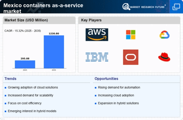 The containers as-a-service market in Mexico is witnessing a growing focus on DevOps practices, which emphasize collaboration between development and operations teams. This cultural shift is driving the adoption of container technologies, as they facilitate continuous integration and continuous delivery (CI/CD) processes. By leveraging containers, organizations can create consistent environments that enhance collaboration and reduce deployment risks. Approximately 45% of Mexican companies are implementing DevOps methodologies, which in turn fuels the demand for containers as-a-service solutions. The containers as-a-service market is thus poised to expand as more organizations recognize the value of integrating DevOps practices into their operational frameworks.