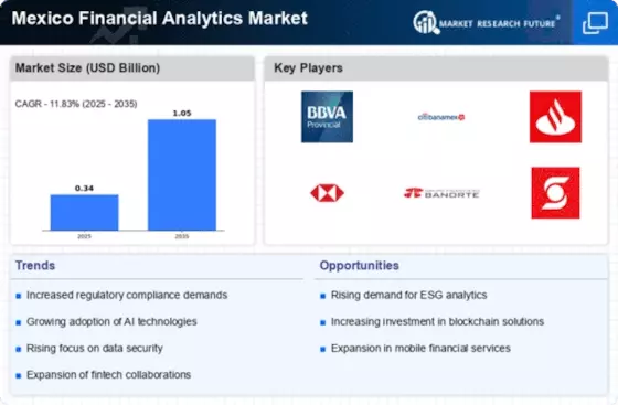 The Mexico Financial Analytics Market is significantly influenced by the expansion of digital banking services. As more consumers embrace online banking, financial institutions are compelled to adopt advanced analytics to manage and analyze vast amounts of digital transaction data. Recent statistics reveal that digital banking adoption in Mexico has increased by over 40 percent in the last year. This shift necessitates robust analytics solutions to ensure security, optimize operations, and enhance customer engagement. Consequently, the Mexico Financial Analytics Market is likely to experience accelerated growth as banks and financial service providers invest in analytics capabilities to support their digital transformation initiatives.