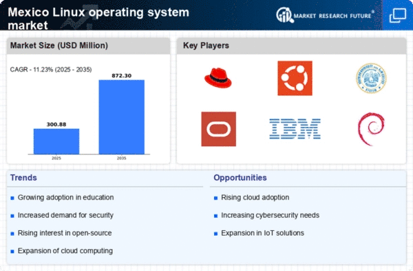 The proliferation of Internet of Things (IoT) devices is significantly impacting the linux operating-system market in Mexico. As more devices become interconnected, the need for reliable and scalable operating systems becomes critical. Linux is often favored for IoT applications due to its flexibility and ability to run on various hardware configurations. The market for IoT in Mexico is projected to grow at a compound annual growth rate (CAGR) of 25% over the next five years, indicating a substantial opportunity for Linux-based solutions. This expansion is likely to drive innovation within the linux operating-system market, as developers seek to create tailored applications that leverage the unique capabilities of Linux in IoT environments.