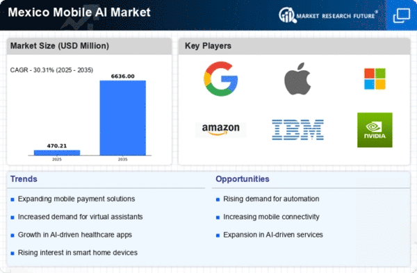 The rapid expansion of the e-commerce sector in Mexico is significantly impacting the mobile ai market. As of 2025, e-commerce sales are projected to reach $30 billion, with a substantial portion of transactions occurring via mobile devices. This shift towards mobile commerce creates a demand for AI-driven solutions that enhance customer experiences, such as personalized shopping recommendations and chatbots for customer service. The mobile ai market is poised to capitalize on this trend, as businesses increasingly seek to integrate AI technologies into their mobile platforms to improve efficiency and customer satisfaction. Moreover, the rise of mobile payment solutions further supports the growth of the mobile ai market, as consumers become more comfortable with using AI-enhanced applications for their shopping needs.