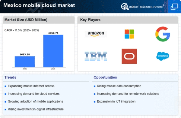 The rollout of 5G technology in Mexico is significantly impacting the mobile cloud market. With faster data transfer rates and lower latency, 5G enables seamless access to cloud services on mobile devices. This technological advancement is expected to enhance user experiences and drive the adoption of mobile cloud solutions. As of November 2025, it is estimated that 5G coverage will reach over 60% of urban areas in Mexico, facilitating a more robust mobile cloud market. The increased connectivity provided by 5G is likely to encourage businesses to migrate to cloud-based platforms, thereby expanding the market further.