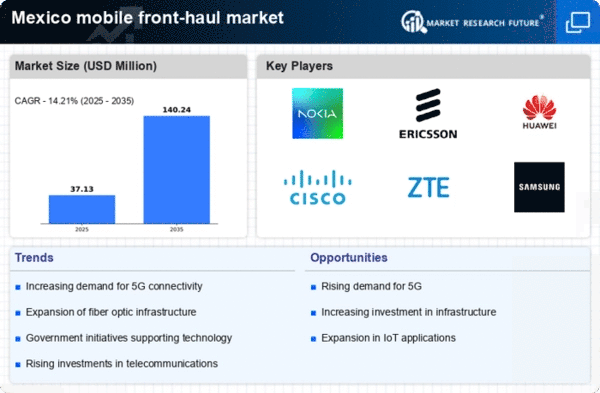 Technological advancements are reshaping the mobile front-haul market in Mexico. Innovations such as software-defined networking (SDN) and network function virtualization (NFV) are enabling telecom operators to optimize their network performance and reduce operational costs. These technologies allow for more flexible and efficient management of network resources, which is essential in meeting the increasing demands for data traffic. The mobile front-haul market is likely to benefit from these advancements, as operators invest in upgrading their infrastructure to support next-generation services. With an estimated investment of $2 billion in network modernization over the next five years, the mobile front-haul market is poised to enhance its capabilities, ensuring that it can deliver high-quality services to consumers and businesses alike.