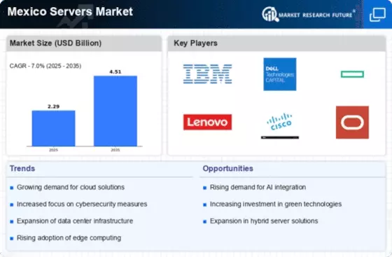 In the context of the Mexico Servers Market, the escalating concerns surrounding cybersecurity are driving organizations to invest in more secure server solutions. With the increasing frequency of cyberattacks, businesses are prioritizing the protection of sensitive data, which necessitates the deployment of advanced server technologies. Reports indicate that cybersecurity spending in Mexico is projected to grow by 20% annually, reflecting the urgency for enhanced security measures. This trend compels server providers to integrate robust security features into their offerings, thereby creating a more resilient infrastructure. Consequently, the Mexico Servers Market is likely to evolve, with a stronger emphasis on cybersecurity as a critical component of server solutions.
