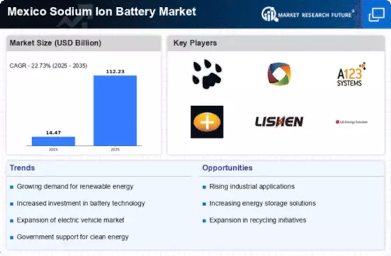In terms of business tactics, companies are localizing manufacturing to reduce costs and improve supply chain efficiency. This approach is particularly relevant in the context of the Mexico Sodium Ion Battery Market, which appears to be moderately fragmented, with several key players vying for market share. The collective influence of these companies is significant, as they not only compete on product offerings but also on the ability to optimize their operations and adapt to local market conditions.