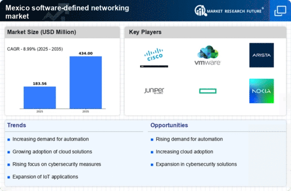 Government initiatives aimed at enhancing digital infrastructure are significantly influencing the software defined-networking market in Mexico. The Mexican government has been actively promoting the adoption of advanced technologies to foster economic growth and innovation. Initiatives such as the National Digital Strategy aim to improve connectivity and digital services across the country. This supportive regulatory environment is likely to encourage investments in software defined networking solutions, as businesses seek to align with national objectives. As a result, the software defined-networking market is expected to benefit from increased funding and resources, facilitating its expansion in the coming years.