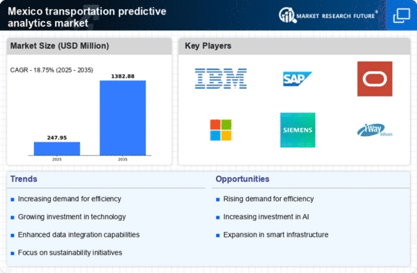 The Mexican government is increasingly recognizing the importance of data-driven transportation solutions. Initiatives aimed at modernizing infrastructure and enhancing public transport systems are gaining traction. For instance, the government has allocated approximately $1 billion for transportation projects in urban areas, which includes investments in predictive analytics technologies. These initiatives are likely to stimulate the transportation predictive-analytics market, as public agencies seek to implement advanced analytics for better resource allocation and service delivery. The collaboration between government and private sectors may further enhance the adoption of predictive analytics, leading to improved transportation outcomes across the country.