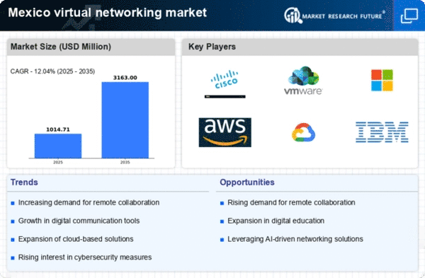 Digital transformation initiatives are gaining momentum across various sectors in Mexico, significantly impacting the virtual networking market. Organizations are increasingly recognizing the importance of integrating digital technologies to enhance operational efficiency and customer engagement. A report indicates that over 70% of Mexican enterprises are prioritizing digital transformation, which inherently requires advanced virtual networking solutions. This trend is likely to drive investments in cloud-based networking services, enabling businesses to streamline processes and improve service delivery. The virtual networking market stands to gain from this expansion, as companies seek to leverage innovative networking solutions to support their digital strategies. As digital transformation continues to evolve, the demand for sophisticated virtual networking tools is expected to rise, further solidifying the market's growth prospects.