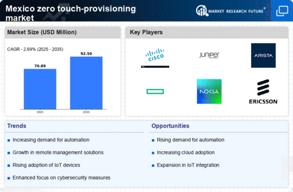 The increasing proliferation of Internet of Things (IoT) devices in Mexico is a key driver for the zero touch-provisioning market. As businesses and consumers alike embrace smart technologies, the need for seamless device management becomes paramount. In 2025, it is estimated that the number of connected IoT devices in Mexico will reach approximately 1 billion, creating a substantial demand for efficient provisioning solutions. Zero touch-provisioning enables organizations to automate the configuration and management of these devices, reducing operational costs and enhancing user experience. This trend is particularly relevant in sectors such as healthcare, manufacturing, and smart cities, where the integration of IoT devices is transforming traditional processes. Consequently, the zero touch-provisioning market is poised for significant growth as companies seek to streamline their operations and improve service delivery.