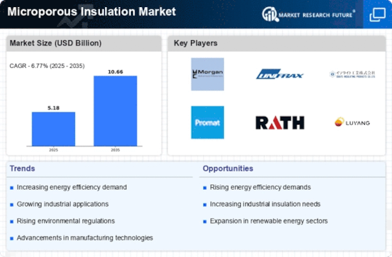 Technological advancements in material science are significantly influencing the Microporous Insulation Market. Innovations in the production processes and formulations of microporous insulation materials are enhancing their thermal performance and durability. For example, the development of new composite materials that incorporate microporous structures is likely to improve insulation efficiency while reducing overall material costs. This evolution in technology not only meets the increasing demands for higher insulation performance but also aligns with sustainability goals by minimizing waste and energy consumption during production. As a result, companies within the Microporous Insulation Market are investing in research and development to leverage these advancements, thereby positioning themselves favorably in a competitive landscape.