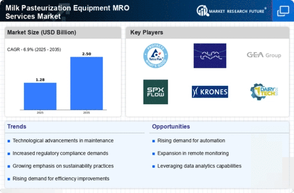 Asia-Pacific represents 25% of the Milk Pasteurization Equipment MRO Services Market, with rapid growth driven by increasing dairy consumption and rising health awareness among consumers. Countries like India and China are witnessing a surge in demand for pasteurized dairy products, supported by government initiatives promoting food safety and quality standards. The region's growth is also fueled by urbanization and changing dietary habits, leading to higher consumption of dairy products.