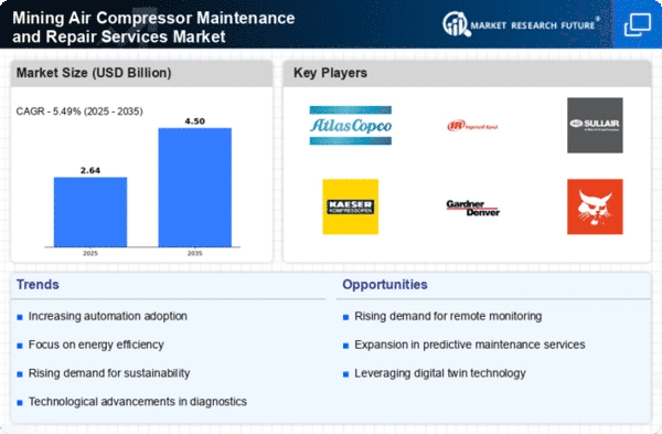 North America leads the Mining Air Compressor Maintenance and Repair Services market, holding a significant share of 1.25 billion in 2024. The region's growth is driven by increasing mining activities, stringent safety regulations, and technological advancements in compressor systems. The demand for efficient maintenance services is further fueled by the need for operational efficiency and reduced downtime in mining operations.