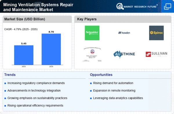 The Middle East and Africa region, with a market size of 0.8, presents emerging opportunities in the Mining Ventilation Systems Repair and Maintenance Market. The region is gradually increasing its mining activities, driven by the need for resource extraction and economic diversification. Governments are implementing policies to attract investment in the mining sector, which is expected to boost demand for ventilation systems. The focus on safety and environmental standards is becoming increasingly important as mining operations expand.