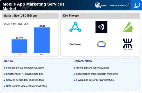The increased focus on data analytics is transforming the Mobile App Marketing Services Market. Companies are leveraging data-driven insights to refine their marketing strategies and enhance user engagement. The ability to analyze user behavior, preferences, and trends allows businesses to tailor their marketing efforts more effectively. Recent findings indicate that organizations utilizing data analytics in their marketing strategies experience a 20% increase in user retention rates. This trend highlights the importance of understanding user dynamics in the mobile app ecosystem. As a result, businesses are likely to invest in mobile app marketing services that incorporate advanced analytics tools to optimize their campaigns. The emphasis on data analytics not only aids in targeting the right audience but also enhances the overall effectiveness of marketing initiatives, thereby driving growth in the mobile app marketing services sector.