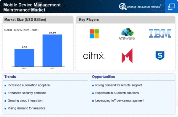 North America continues to lead the Mobile Device Management (MDM) Maintenance Market, holding a significant share of 2.6B in 2025. The region's growth is driven by increasing adoption of mobile devices in enterprises, stringent data security regulations, and the rise of remote work. Companies are investing heavily in MDM solutions to ensure compliance and enhance productivity, making it a critical area for IT investments.