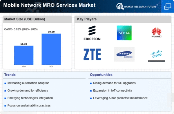 Asia-Pacific is emerging as a significant player in the Mobile Network MRO Services Market, with a market size of 4.0 in 2024. The region's growth is driven by increasing smartphone penetration, urbanization, and the demand for high-speed internet services. Government initiatives aimed at enhancing digital connectivity and infrastructure development are also pivotal in propelling market growth. Countries like China, India, and Japan are at the forefront of this expansion, with major companies such as Huawei and ZTE Corporation leading the charge. The competitive landscape is marked by rapid technological advancements and a focus on cost-effective solutions. As the region continues to invest in next-generation networks, the demand for MRO services is expected to rise significantly, positioning Asia-Pacific as a key market player.