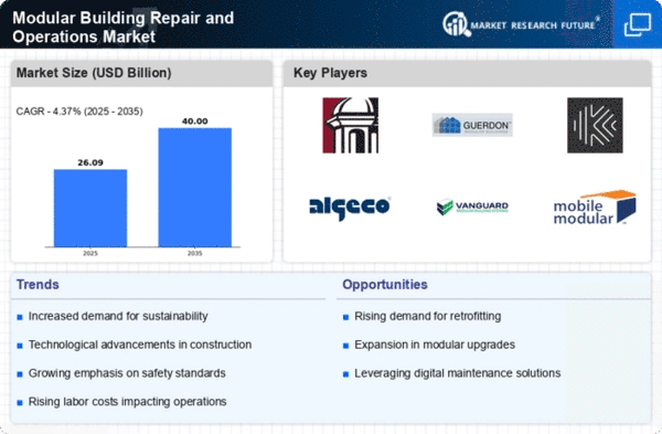 The Middle East and Africa region is at the nascent stage of the Modular Building Repair and Operations Market, with a market size of 0.5 in 2024. Despite its small size, the region presents significant growth potential driven by increasing urbanization, infrastructure development, and a growing focus on sustainable building practices. Governments are beginning to recognize the benefits of modular construction, which could lead to a shift in market dynamics in the coming years.