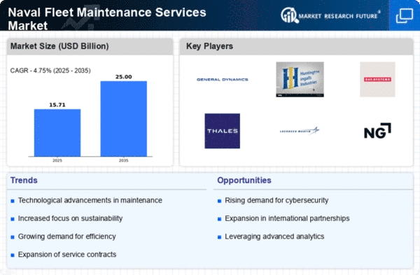 As of December the most pressing trends in the Naval Fleet Maintenance Services Market include the integration of digital technologies, a focus on sustainability, and the adoption of AI solutions. Strategic alliances are increasingly shaping the competitive landscape, as companies recognize the need for collaboration to drive innovation. Moving forward, competitive differentiation is likely to evolve from traditional price-based competition to a focus on technological innovation, reliability in supply chains, and the ability to deliver comprehensive, integrated solutions that meet the complex needs of modern naval operations.
