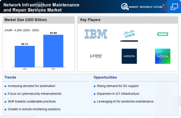 The competitive landscape in North America is robust, featuring key players such as IBM, Cisco Systems, and Hewlett Packard Enterprise. These companies are at the forefront of innovation, providing cutting-edge solutions to meet the evolving needs of enterprises. The presence of a well-established IT infrastructure and a skilled workforce further strengthens the region's position, making it a hub for network maintenance and repair services.