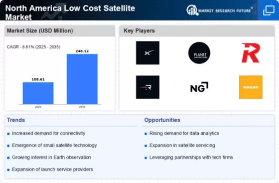 The North America Low Cost Satellite Market is witnessing the emergence of new applications and services that leverage satellite technology. Industries such as telecommunications, disaster management, and logistics are increasingly adopting satellite solutions to enhance their operations. For example, low-cost satellites are being utilized for Internet of Things (IoT) connectivity in remote areas, providing essential services where traditional infrastructure is lacking. This diversification of applications is likely to expand the market reach of low-cost satellites, attracting a broader range of customers. As these new services gain traction, the North America Low Cost Satellite Market is expected to experience robust growth.
