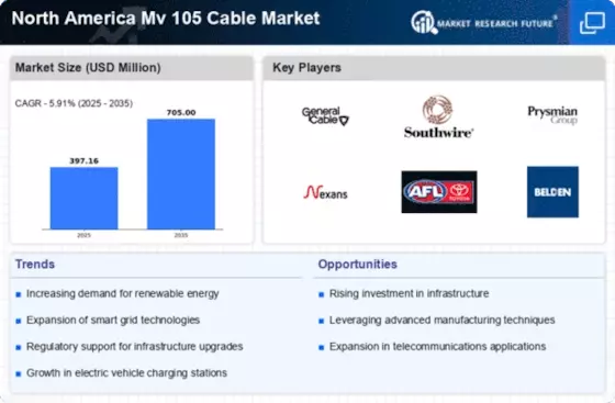 The North America Mv 105 Cable Market is poised for growth due to increased investment in smart grid technologies. Utilities are recognizing the importance of modernizing their electrical grids to enhance efficiency, reliability, and sustainability. Smart grids require advanced cabling solutions that can support real-time data transmission and high voltage applications. Mv 105 cables are well-suited for these requirements, making them a preferred choice for utilities looking to implement smart grid initiatives. As investments in smart grid infrastructure continue to rise, the demand for Mv 105 cables is likely to increase, reflecting the industry's shift towards more intelligent and responsive electrical systems.