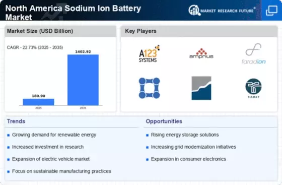 The North America Sodium Ion Battery Market is likely to benefit from the cost-effectiveness of sodium ion batteries compared to traditional lithium-ion batteries. The raw materials for sodium ion batteries are more abundant and less expensive, which could lead to lower production costs. As of early 2026, the average cost of sodium ion batteries is estimated to be 20-30 percent lower than that of lithium-ion counterparts. This cost advantage may attract manufacturers and consumers seeking affordable energy storage solutions, particularly in applications such as grid storage and renewable energy integration. Consequently, the economic viability of sodium ion batteries is expected to drive their adoption, further propelling the North America Sodium Ion Battery Market.