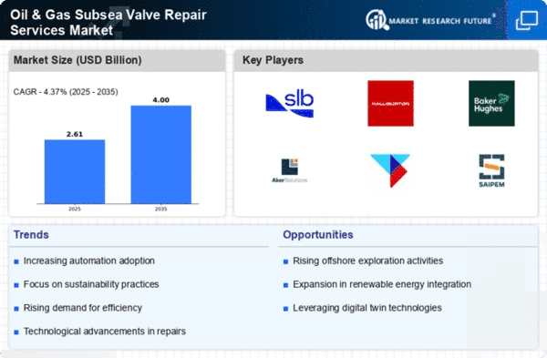 The Middle East & Africa region, with a market size of 0.1 billion, presents untapped potential in the Oil & Gas Subsea Valve Repair Services market. The region's growth is driven by increasing investments in oil and gas exploration, particularly in offshore fields. Regulatory support for enhancing operational efficiency and safety standards is also a significant driver, as countries seek to optimize their resource extraction processes.