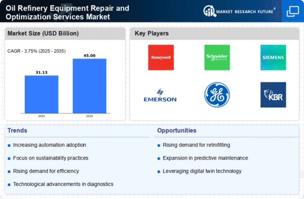 Europe's Oil Refinery Equipment Repair and Optimization Services Market is projected to grow, with a market size of 8.0 in 2025. The region is experiencing a shift towards more sustainable refining practices, driven by regulatory frameworks such as the European Green Deal, which aims to reduce carbon emissions significantly. This regulatory push is fostering demand for advanced repair and optimization services that align with environmental goals, thus enhancing market growth.