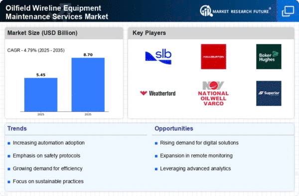 The Middle East and Africa region, with a market size of 0.8, presents unique opportunities in the Oilfield Wireline Equipment Maintenance Services Market. The region's growth is primarily driven by its vast oil reserves and ongoing investments in energy infrastructure. Regulatory frameworks are increasingly supportive of foreign investments, enhancing the attractiveness of the market for service providers. The demand for maintenance services is expected to rise as operators seek to optimize their operations and ensure compliance with safety standards.