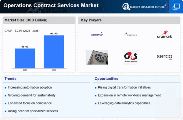 North America continues to lead the Operations Contract Services Market, holding a significant market share of 26.0 in 2024. The region's growth is driven by increasing demand for outsourcing services, technological advancements, and a focus on operational efficiency. Regulatory support and favorable business environments further catalyze market expansion, making it a hub for innovation and service delivery. The competitive landscape in North America is robust, featuring key players such as Aramark, Sodexo, and ISS A/S. The U.S. stands out as the largest market, driven by a diverse economy and a high demand for contract services across various sectors. Companies are increasingly leveraging technology to enhance service delivery, positioning themselves for sustained growth in this dynamic market.