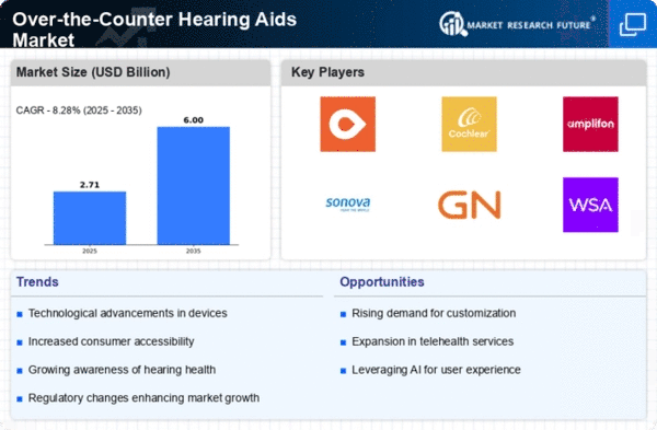 Europe's OTC hearing aids market is gaining momentum, with a market size of 0.75B in 2025. The growth is driven by an aging population, increased healthcare spending, and a shift towards self-care solutions. Regulatory frameworks across countries are becoming more supportive, allowing for easier access to OTC products. The European Commission's initiatives to improve healthcare accessibility are also contributing to this trend, enhancing consumer confidence in OTC solutions. Leading countries such as Germany, France, and Italy are at the forefront of this market, with a competitive landscape featuring major players like Amplifon and Sonova. The presence of established companies and innovative startups is fostering a dynamic environment. As the market matures, there is a growing emphasis on digital health solutions and tele-audiology, which are expected to reshape consumer experiences in the coming years.