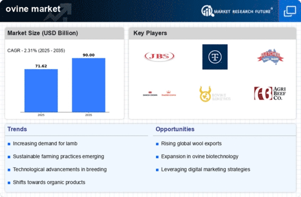 Europe holds the largest share of the ovine market, accounting for $35.0 million in 2024. The region benefits from a rich tradition of sheep farming, with increasing demand for high-quality lamb products driving growth. Regulatory frameworks promoting animal welfare and sustainable practices are also pivotal in shaping the market landscape. The European market is characterized by a strong focus on organic and locally sourced products, appealing to health-conscious consumers. Countries like the UK, France, and Spain are at the forefront of ovine production, with significant contributions from key players such as Danish Crown A/S and Fletcher International Exports Pty Ltd. The competitive environment is marked by a blend of traditional farming and modern agribusiness practices. The presence of established brands and a growing export market further solidify Europe’s position as a leader in the global ovine sector.