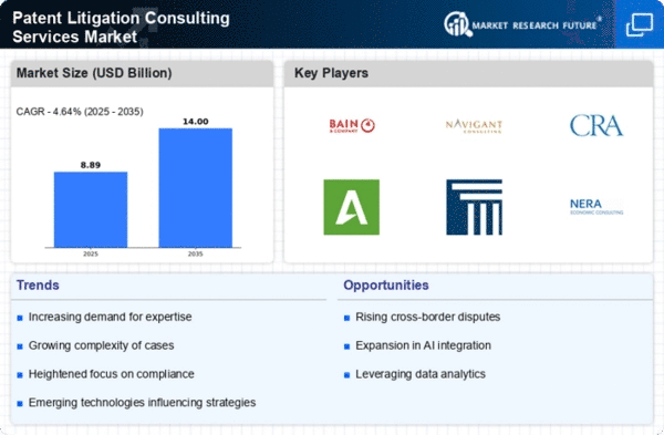 The competitive landscape is characterized by major players such as Bain & Company, Navigant Consulting, and FTI Consulting, which dominate the market. The U.S. remains the leading country, with a high concentration of legal firms and consulting agencies specializing in patent litigation. This environment fosters collaboration and innovation, ensuring that North America remains at the forefront of patent consulting services.