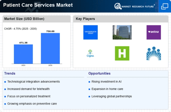 North America is poised to maintain its leadership in the Patient Care Services market, holding a significant market share of 225.0 million in 2025. Key growth drivers include an aging population, increasing chronic diseases, and advancements in healthcare technology. Regulatory support, such as the Affordable Care Act, has also catalyzed demand for patient-centered services, enhancing accessibility and quality of care.